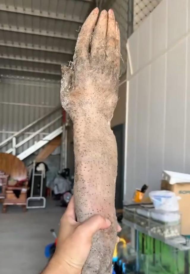 这个人手山药不只是有手掌,就连手臂都有,而且这个手臂的长度,跟人的前臂长度也差不多,要不临近了看,真的以为这是真实的手臂。