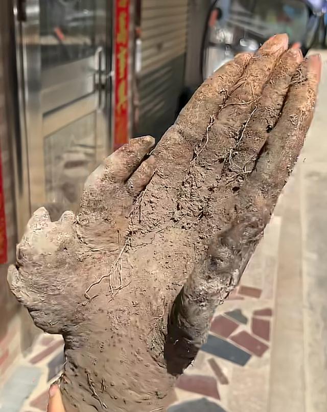 当把人手挖出来后,一家人都惊呆了,原来这不是真实的人手,而是人手山药。