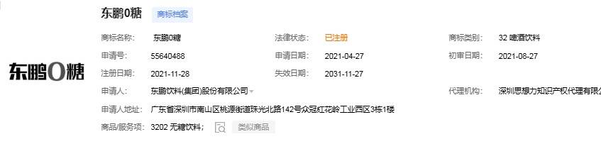 据封面新闻报道,东鹏饮料已成功注册“东鹏0糖”“0糖特饮”等商标,覆盖多类国际分类,而蒙牛、奈雪的茶等品牌同类申请却相继被驳回。
